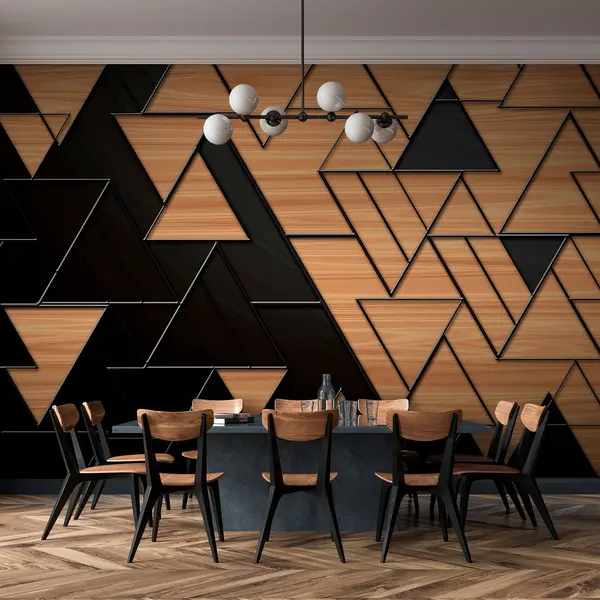 Fototapetak 3D sötétszürke és fa szemcsés háromszögek dombornyomott vonalakkal Nr. u75167