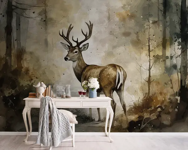 Fototapetak Kézzel rajzolt szarvas az erdőben Nr. u95410