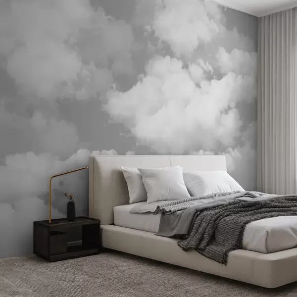 Fototapetak A fehér felhők a szürke égbolton új trendet jelentenek a belső térben Nr. u94178
