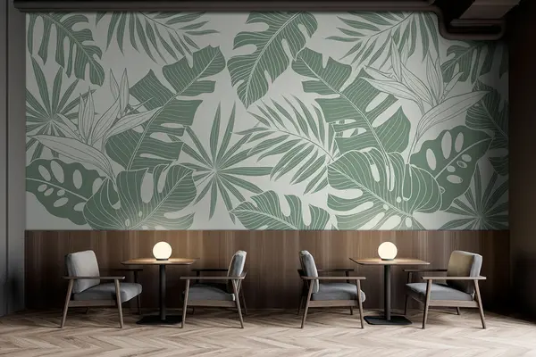 Fototapetak Monstera pálmalevelek minimális halványzöld színben Nr. u96909