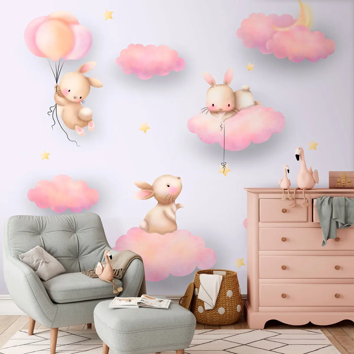 Fototapetak Nyuszik a felhőkön gyerekstílusban Nr. u96613