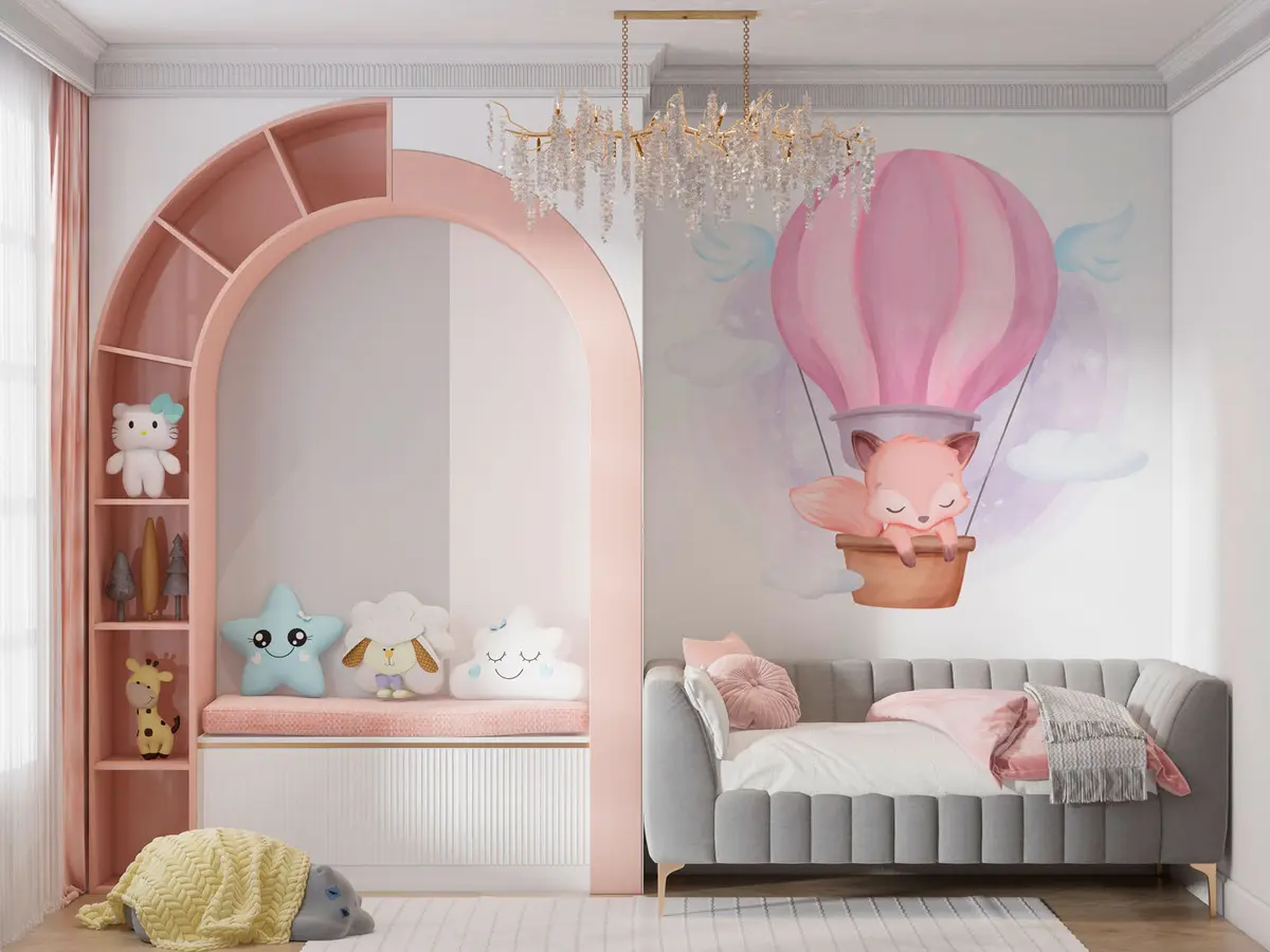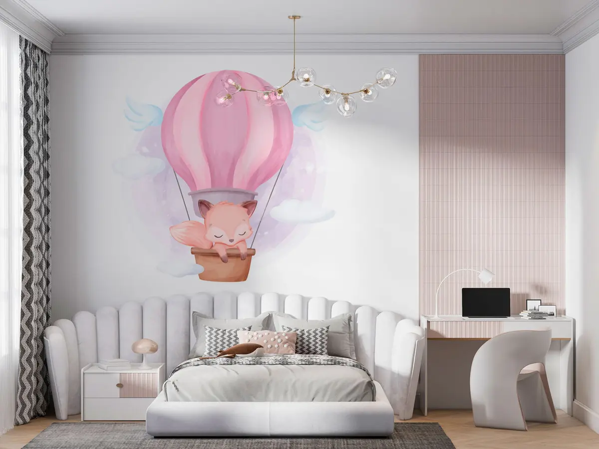 Fototapetak Illusztráció: egy róka egy hőlégballonban Nr. u97395