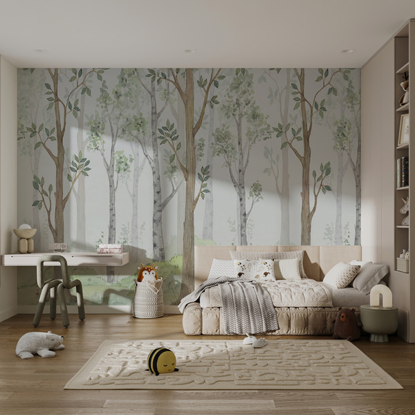 Fotótapéta Grunge esőerdő és lány arc sziluettje
