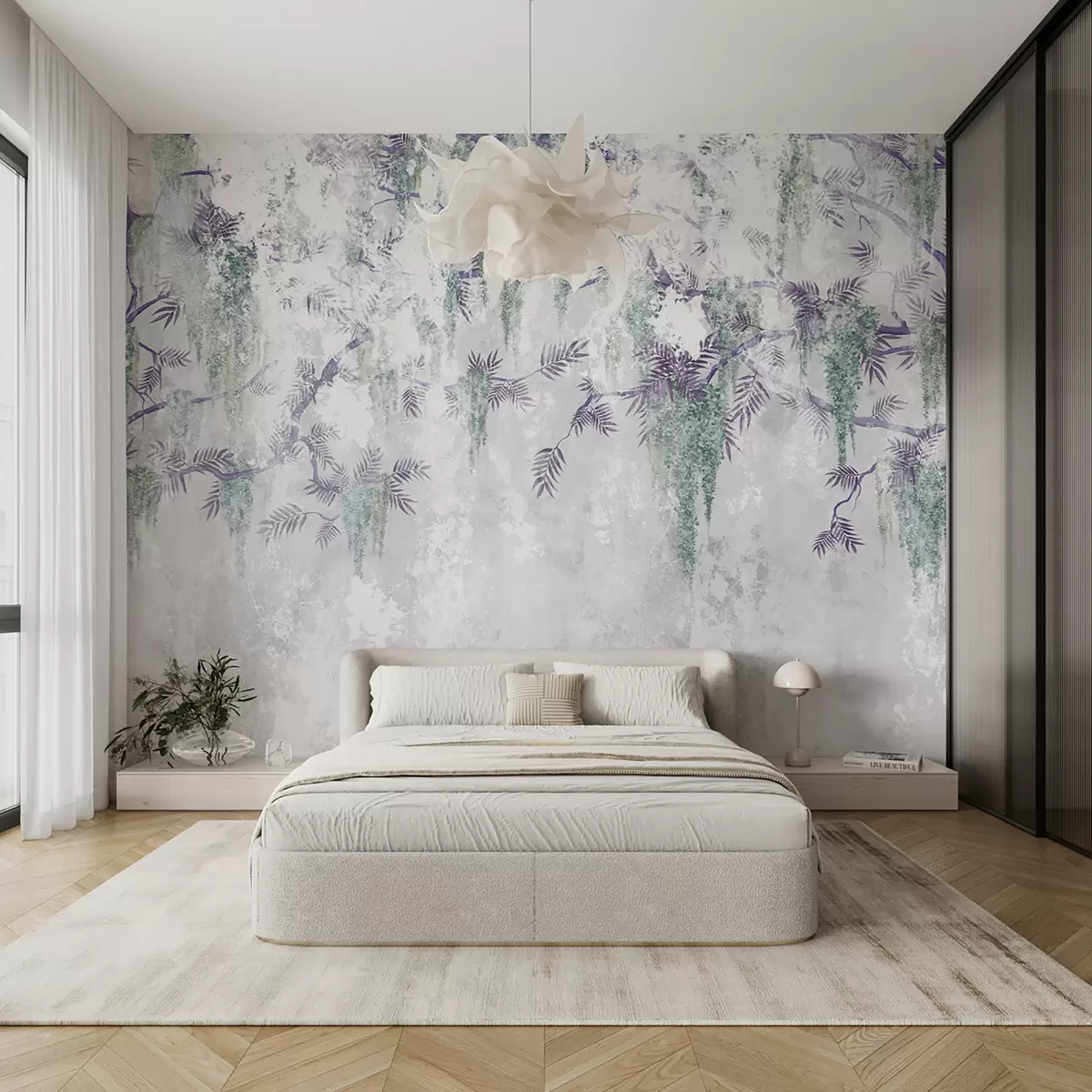 Fototapetak Lógó divatos grunge ágak lila virágokkal kék színekben Nr. u73816v1