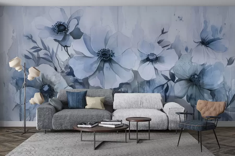 Fotótapéta Rusztikus virágok, akvarell stílusú rajz, kék színek