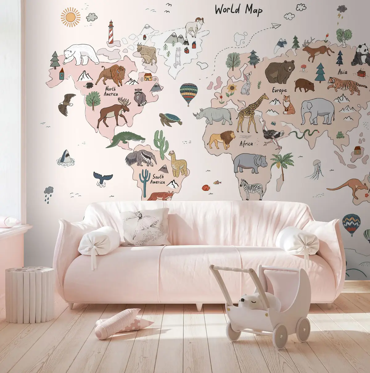 Fototapetak Gyermek világtérkép állatokkal Nr. u95028