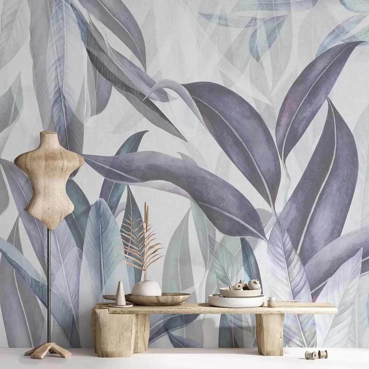 Fototapetak Zöld és rózsaszín pálmalevelek kék színekben Nr. u94302v1