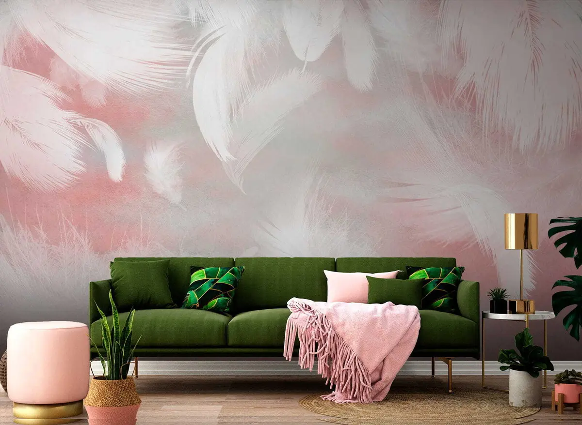Fototapetak Fehér tollak rózsaszín alapon Nr. u41755