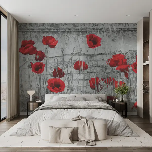 Fototapetak Fényes pipacsok a fal hátterében Nr. u40552