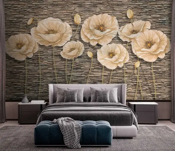 Fototapetak Virágok a háttérben egy kőfal Nr. u41855