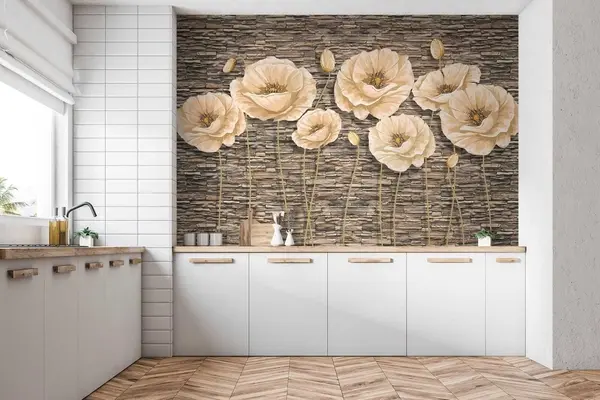 Fototapetak Virágok a háttérben egy kőfal Nr. u41855