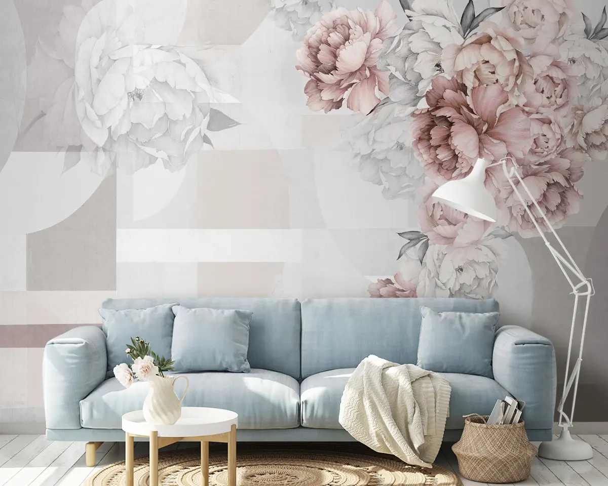 Fototapetak Akvarell bazsarózsa rózsaszín színű geometriai háttérrel Nr. u95855