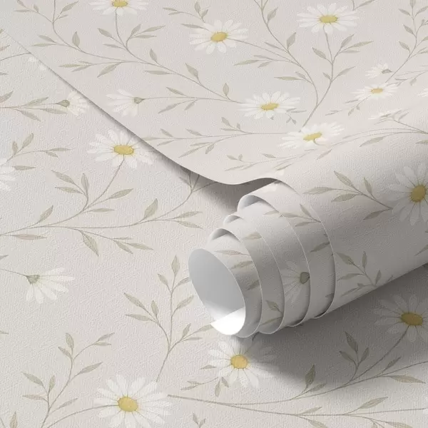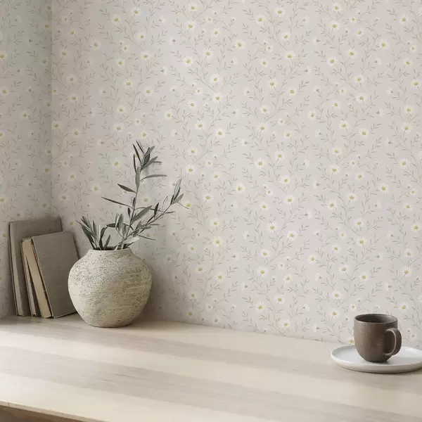 Tapéta Apró margaréták gallyakon, meleg bézs színben Nr. a00777