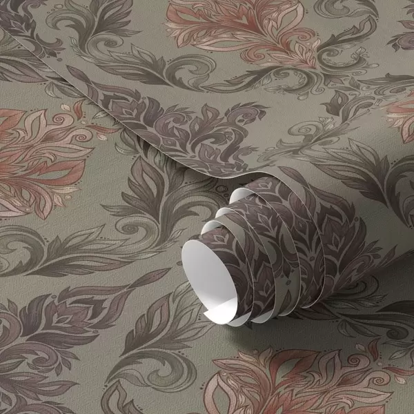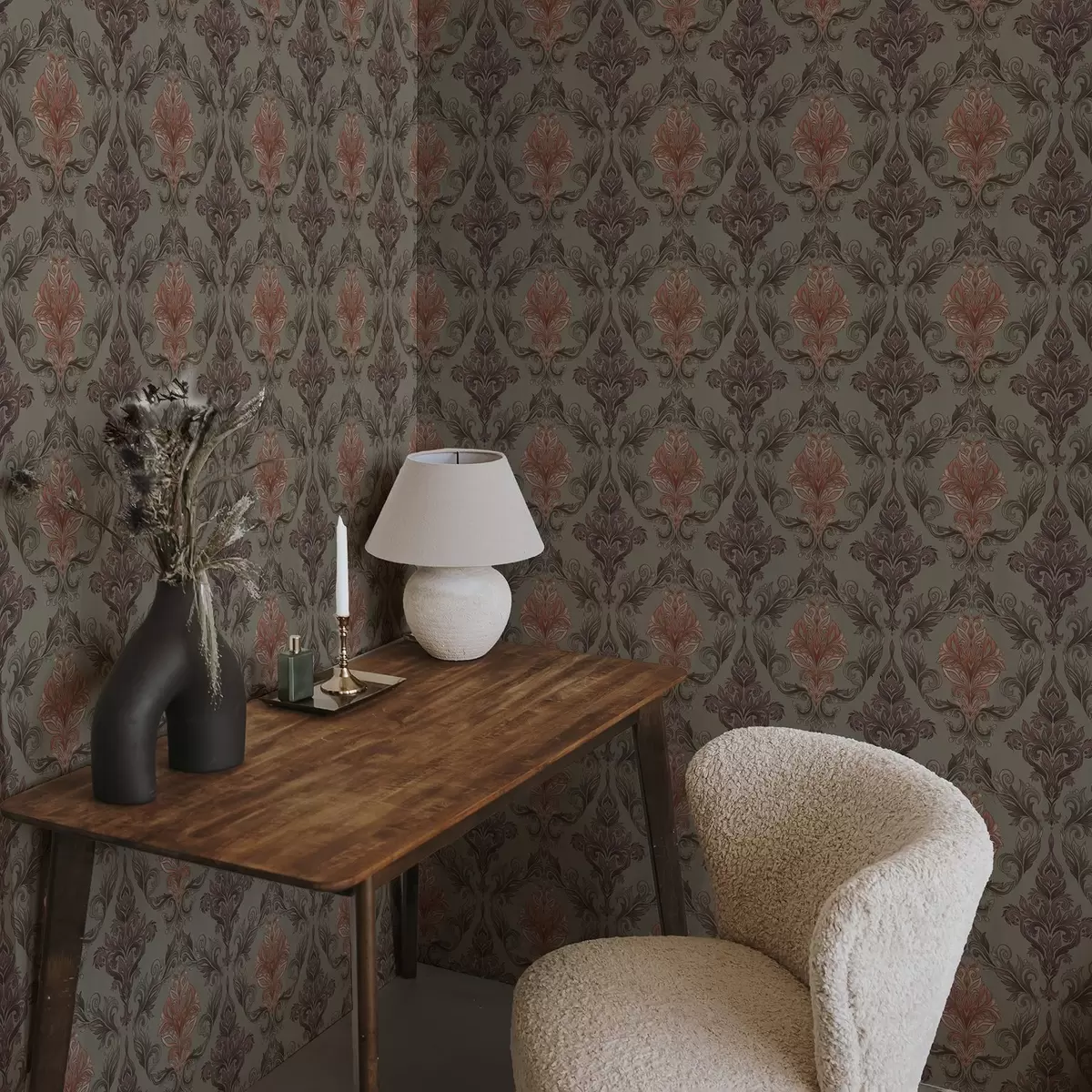 Tapéta Terrakotta damaszt, halvány olíva alapon Nr. a00828v3