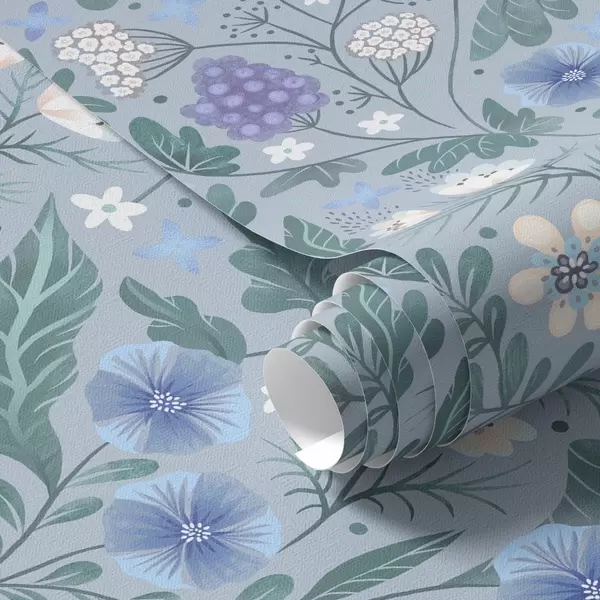 Tapéta Vadvirágok és bogyók szürkéskék háttér előtt Nr. a00849v1