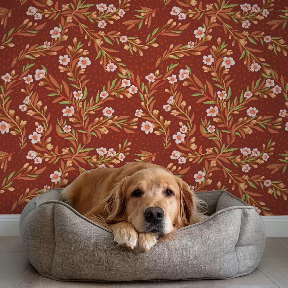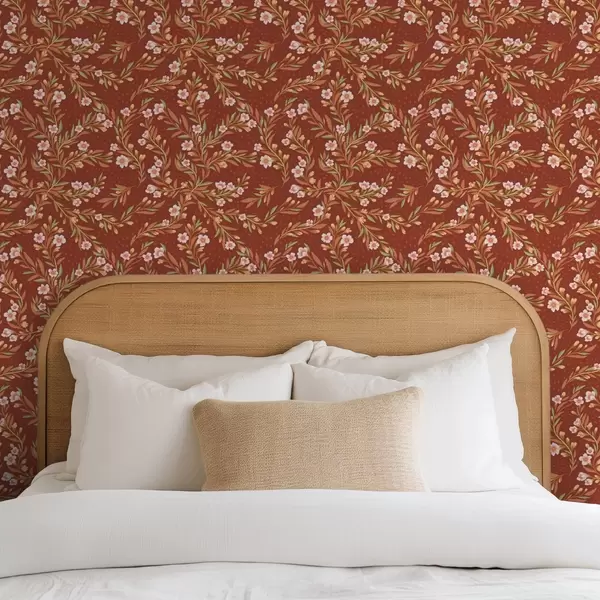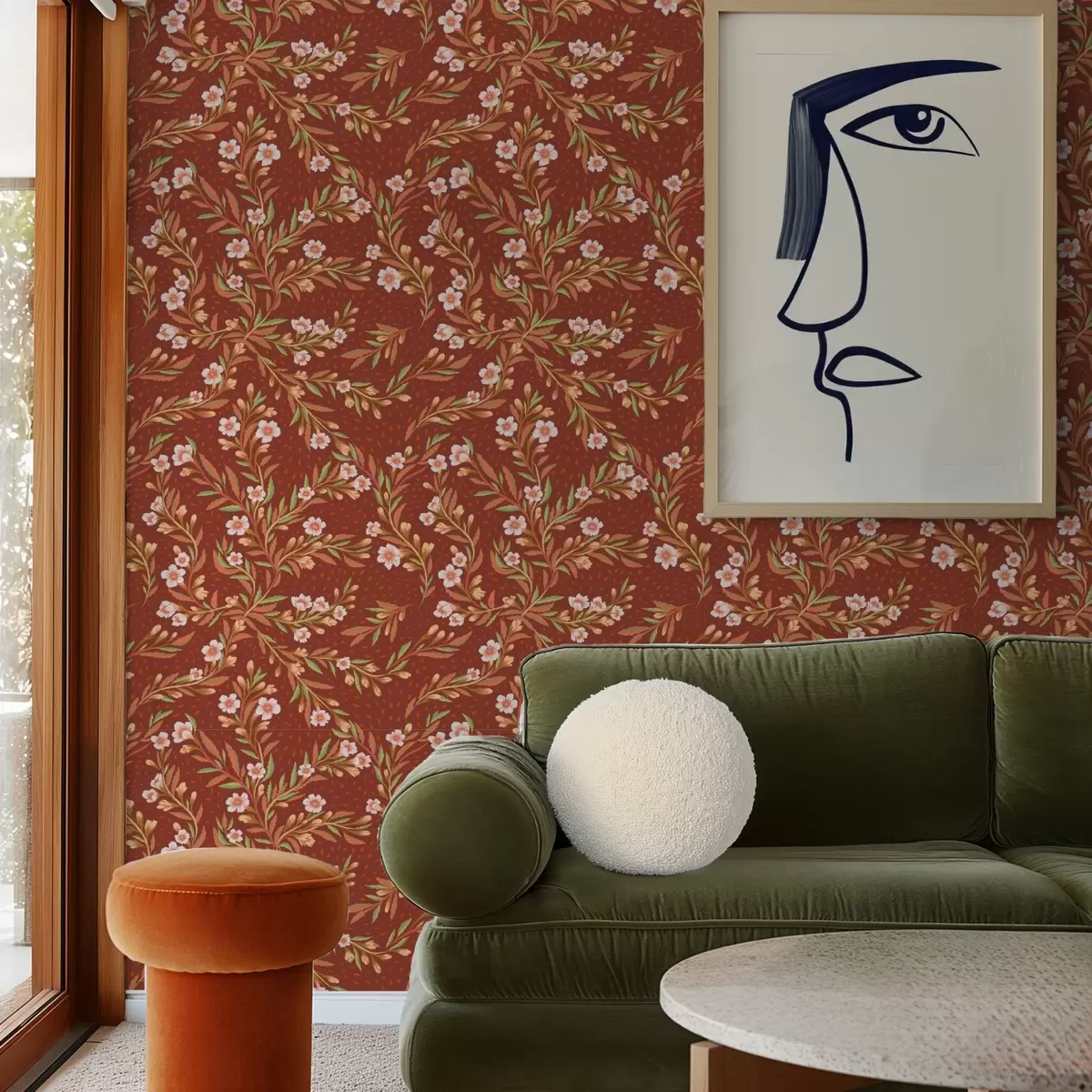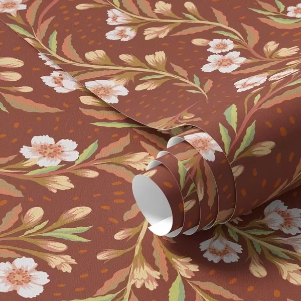 Tapéta Terrakotta háttér előtt fehér virágokkal borított ágak Nr. a00850v1