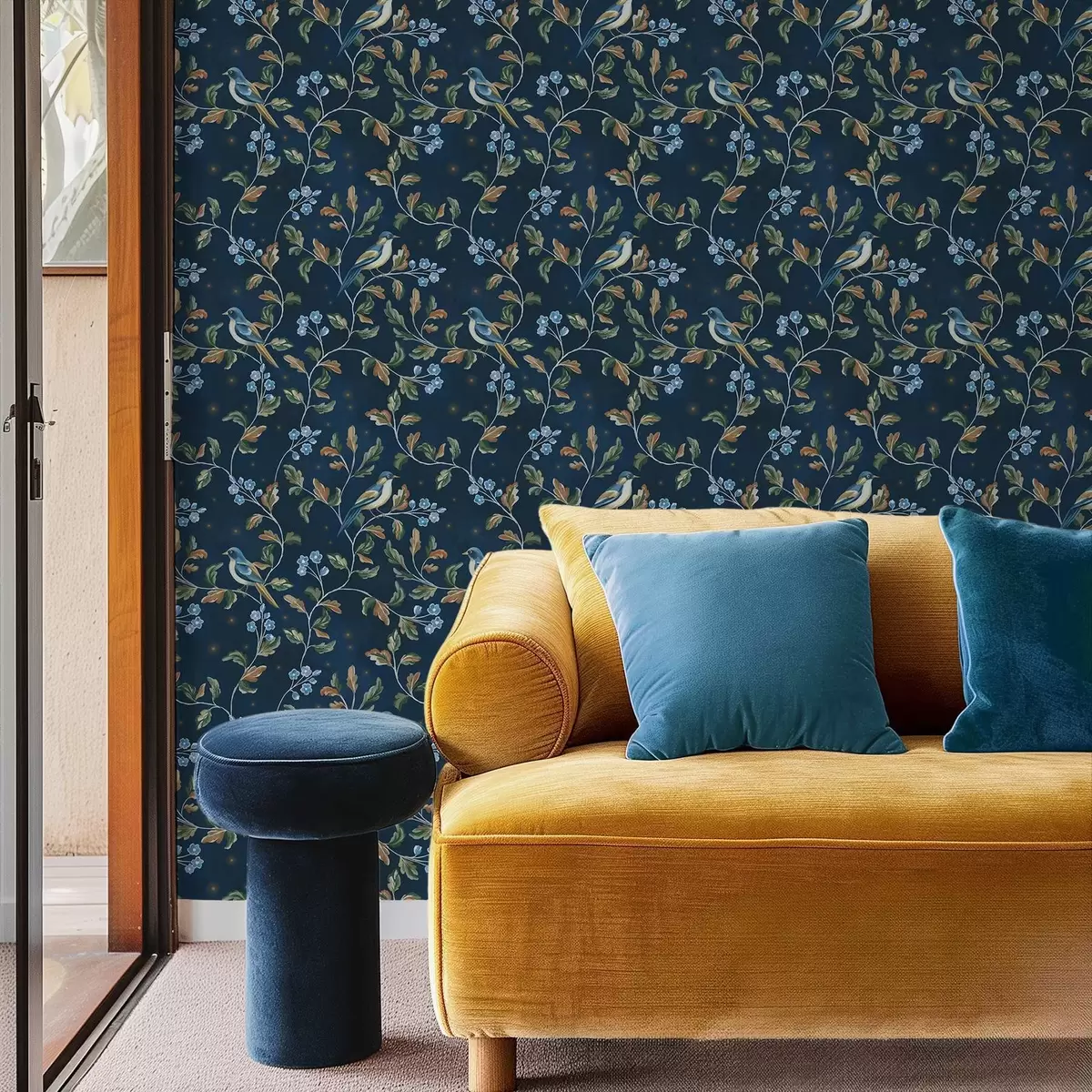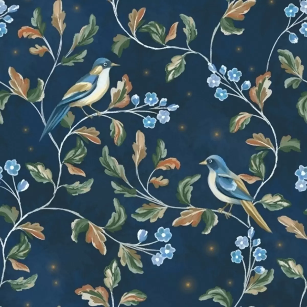 Fototapetak Mellek ágakon, éjszakai kék háttér szikrákkal Nr. a00858