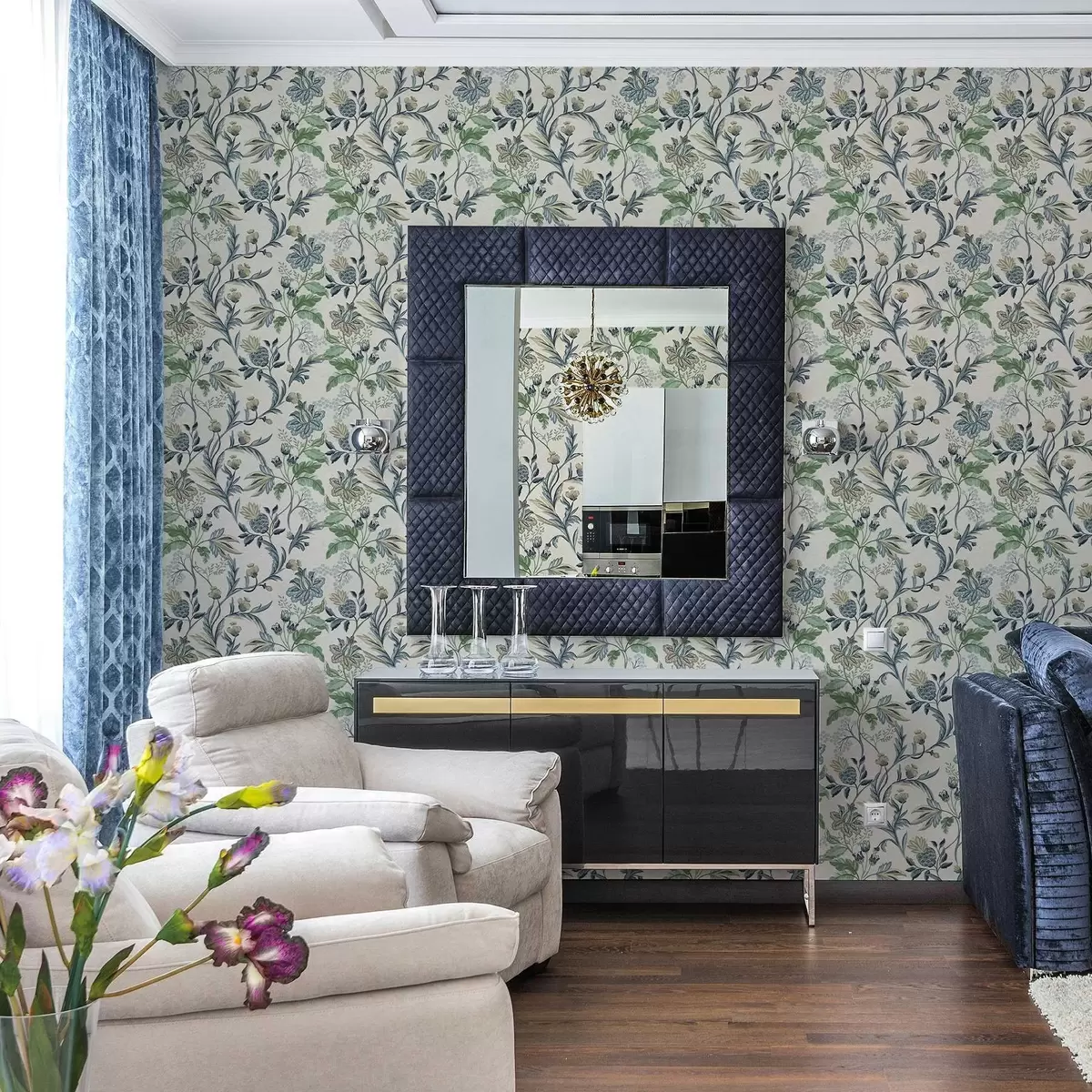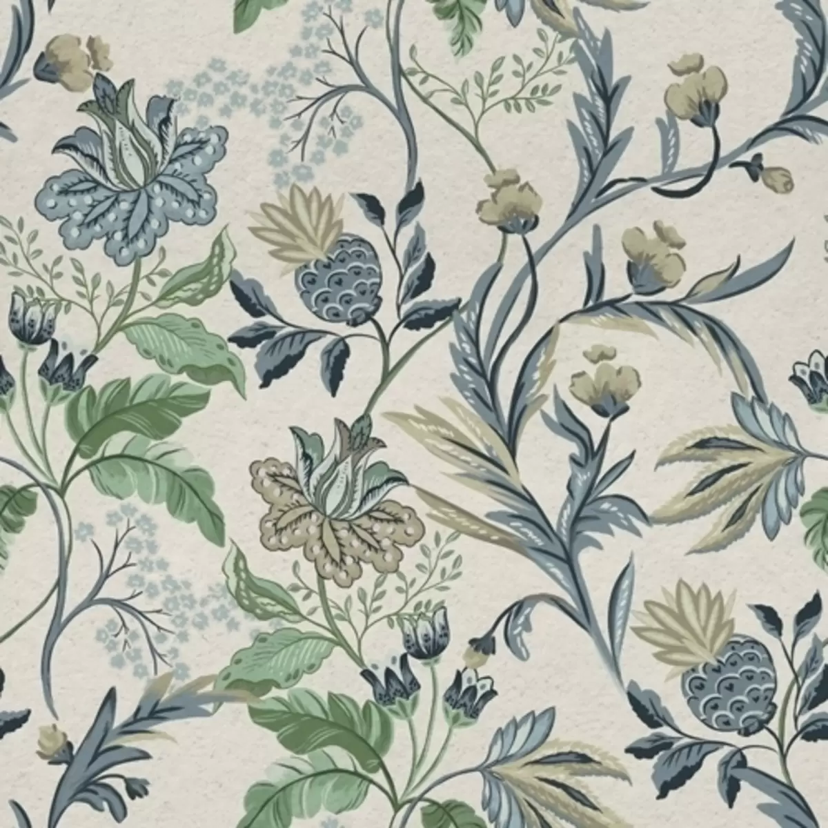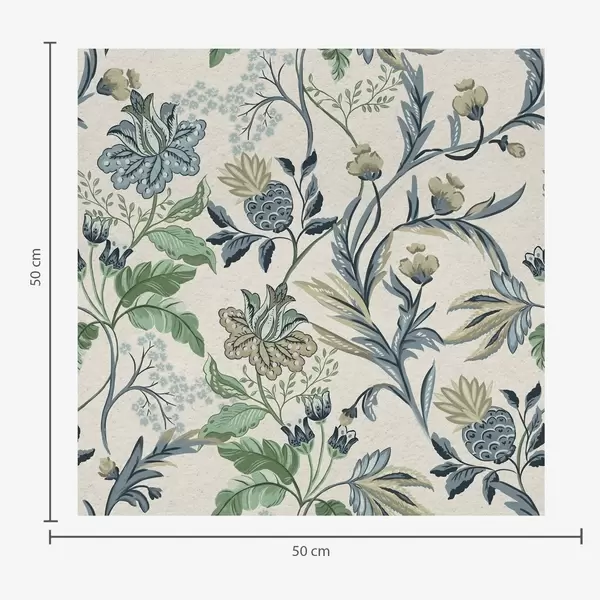 Fototapetak Kék-zöld népi virágok és levelek krém színű alapon Nr. a00863