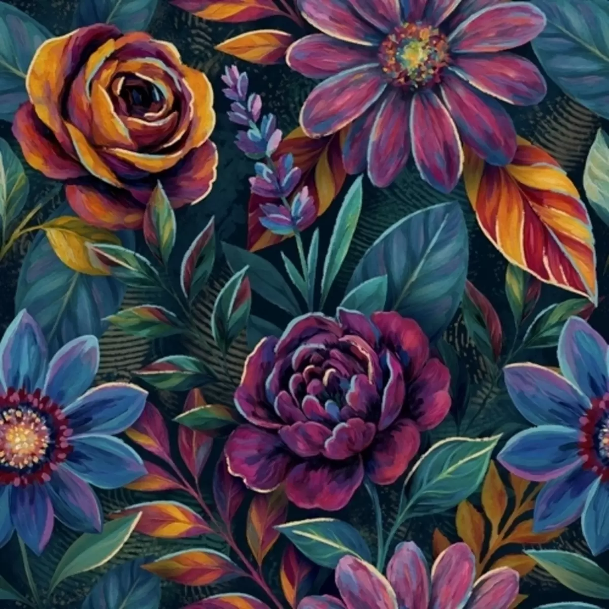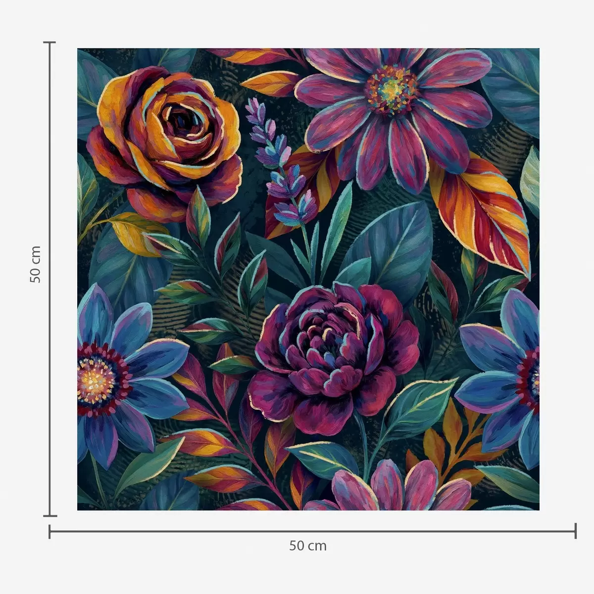 Fototapetak Élénk, ékszer színekben pompázó virágok mélykék alapon Nr. a00871