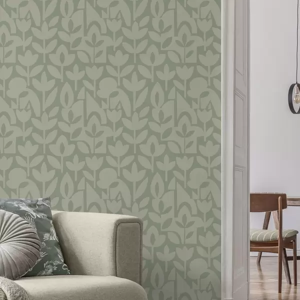 Fototapetak Geometrikus virágsziluettek lágy zsályaszínben Nr. a00875v1
