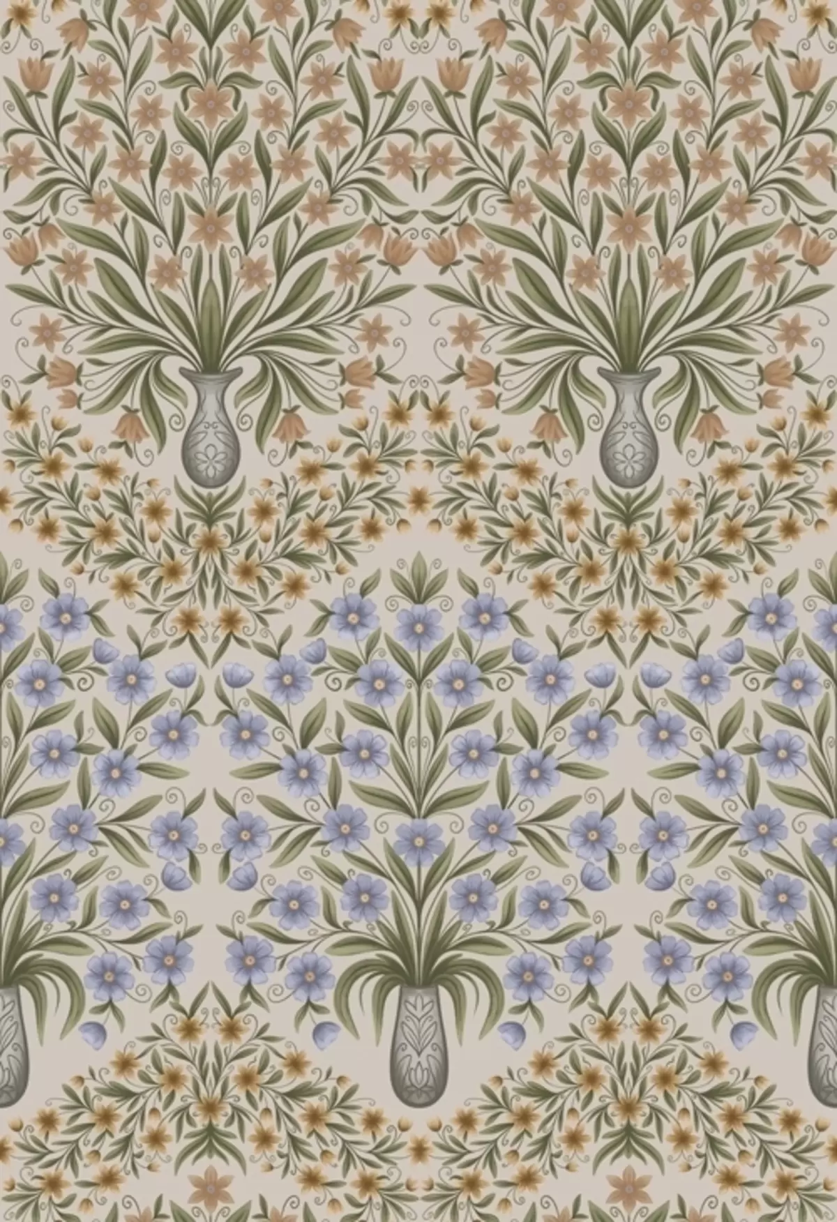 Fototapetak Népi vázák kék virágokkal és olajágakkal, rózsaszín alapon Nr. a00900