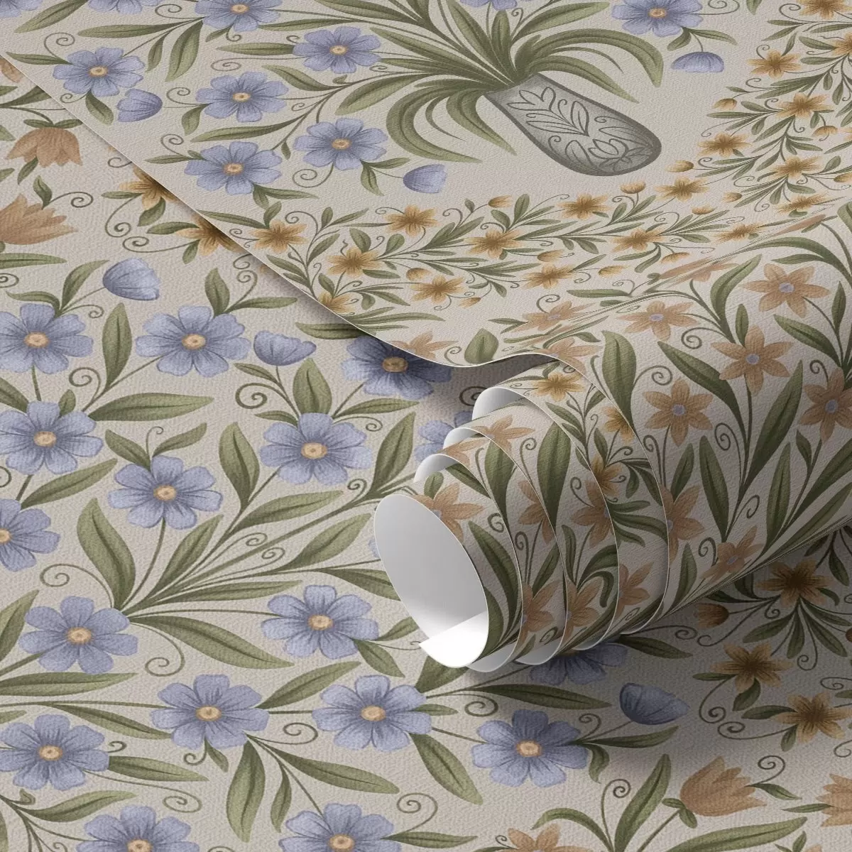 Fototapetak Vázák és kék virágok váltakozva, szálas virágokkal, szálas virágokkal, szálas virágokkal, sz Nr. a00901