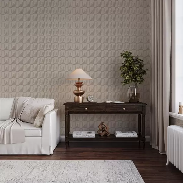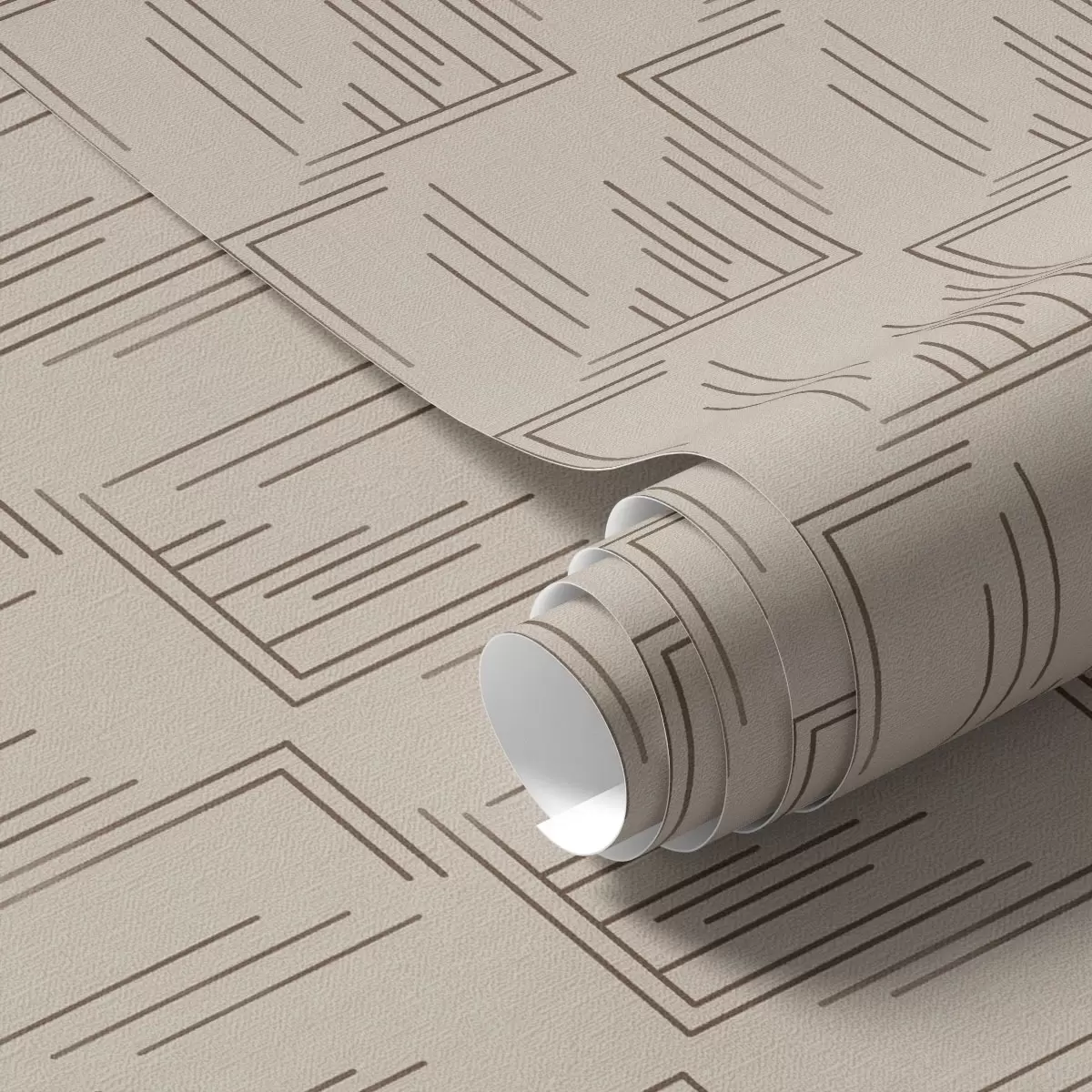 Fototapetak Kakaószínű vonalakkal díszített saroknégyzetek meleg bézs színű alapon Nr. a00910