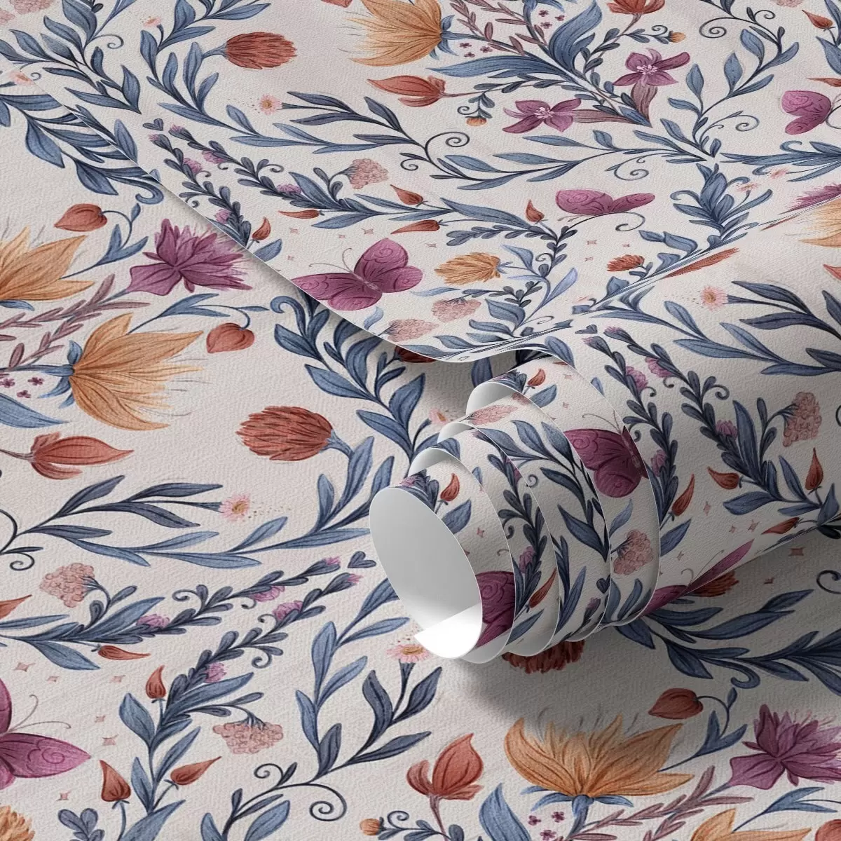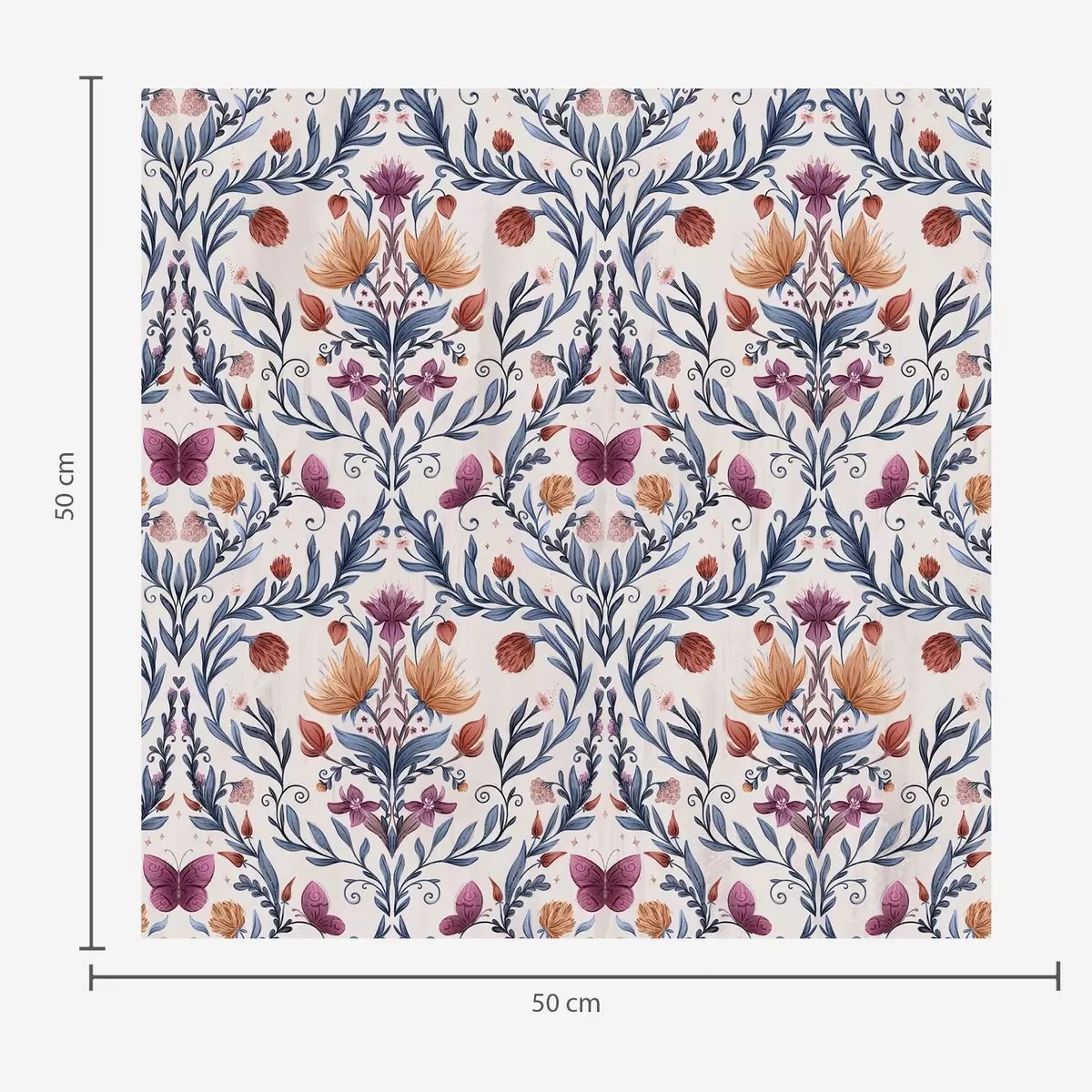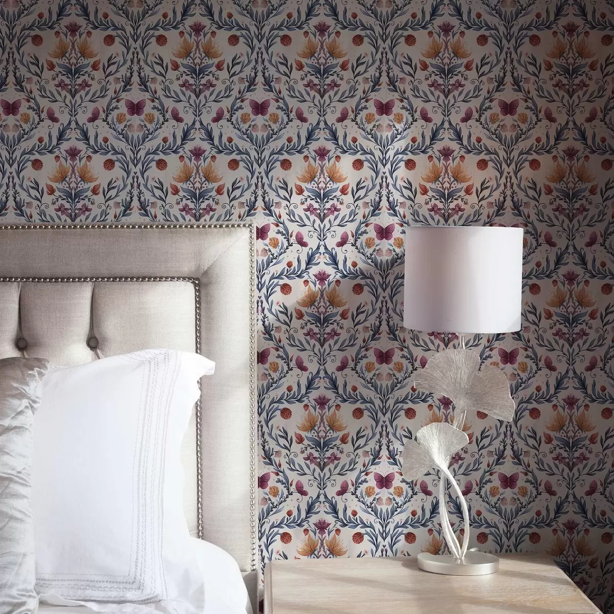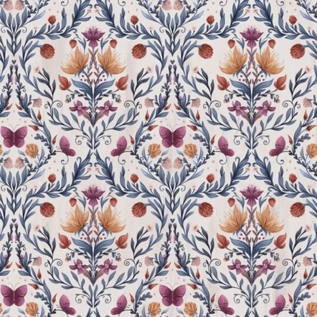 Fototapetak Virágos damaszt, fehér alapon sötétkék és terrakotta színű pillangókkal Nr. a00926v1