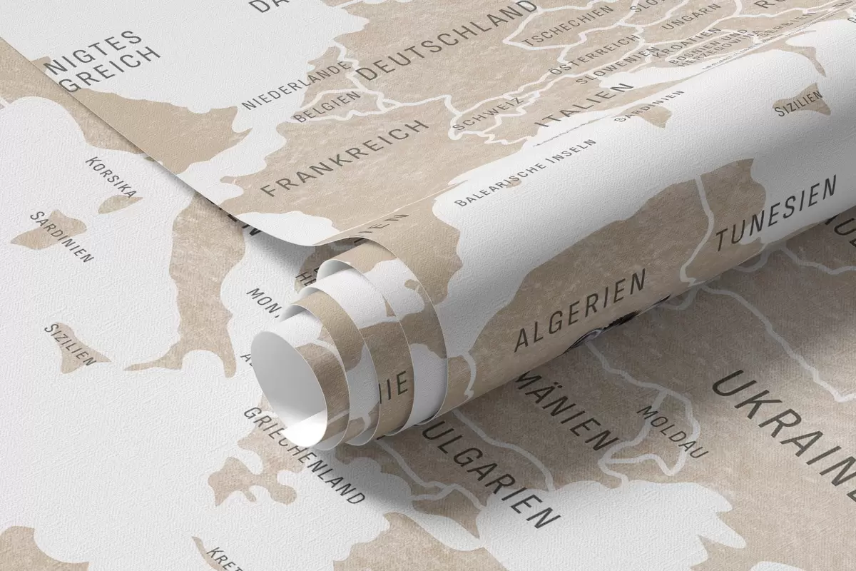 Fototapetak Gyerekeknek szóló, akvarell stílusú térkép állatokkal és hőlégballonokkal. Német nyelvű. Bézs színű. Nr. c00001dev2