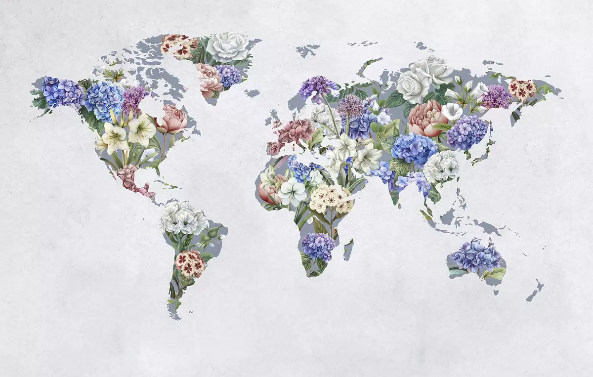 Fototapetak Különféle élénk színű virágokból készült színes világtérkép Nr. c00006