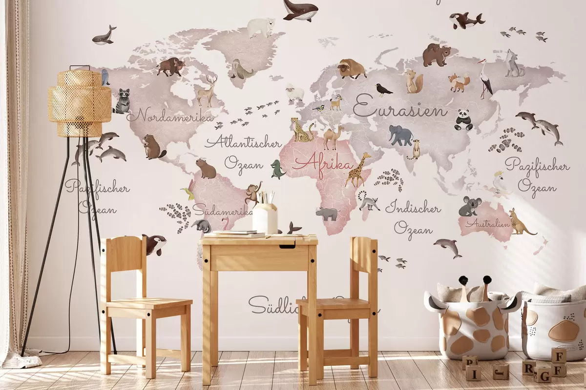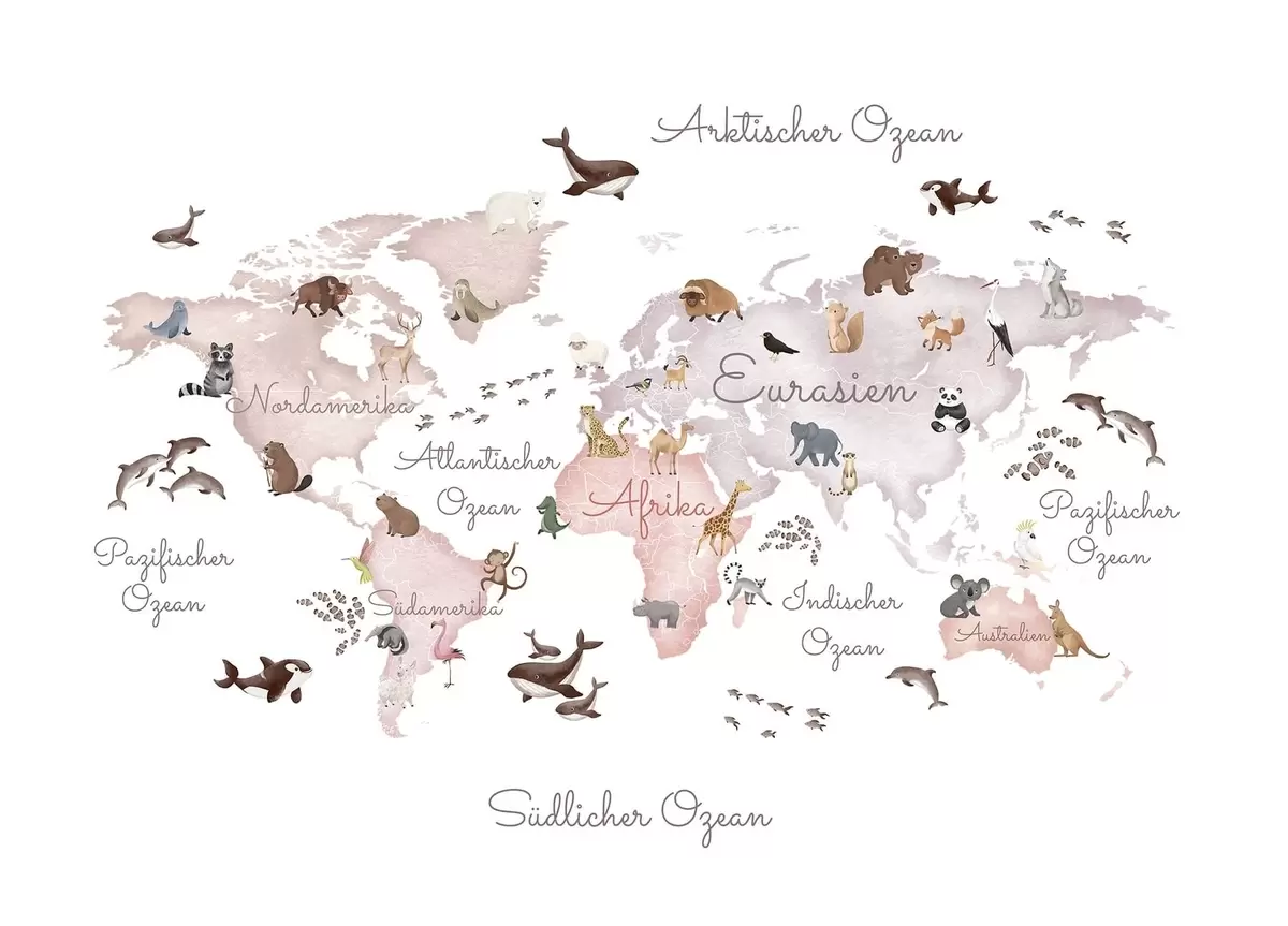 Fototapetak Állatokkal díszített, akvarell stílusú bézs színű térkép. Feliratok német nyelven Nr. c00012dev3