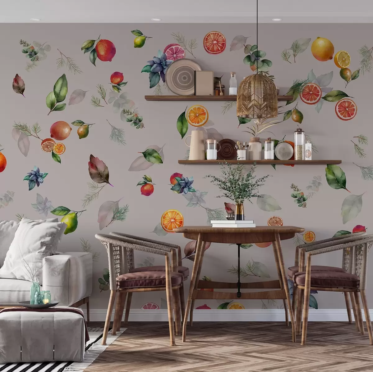 Fototapetak Színes gyümölcsök és levelek mintája Nr. u98770v1