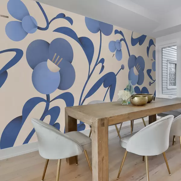 Fototapetak Botanikus nyomtatás dekoratív kék virágokkal bézs alapon Nr. u99196v7