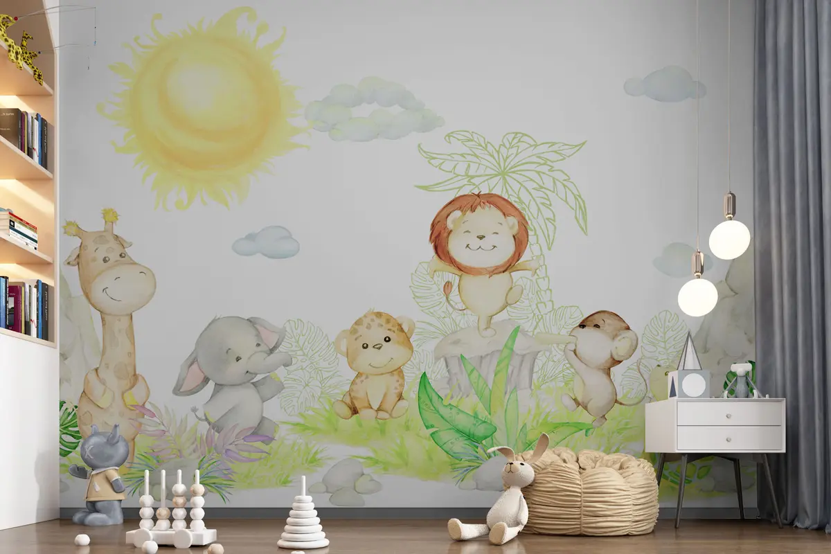 Fototapetak Aranyos trópusi állatok akvarell stílusban Nr. u99486