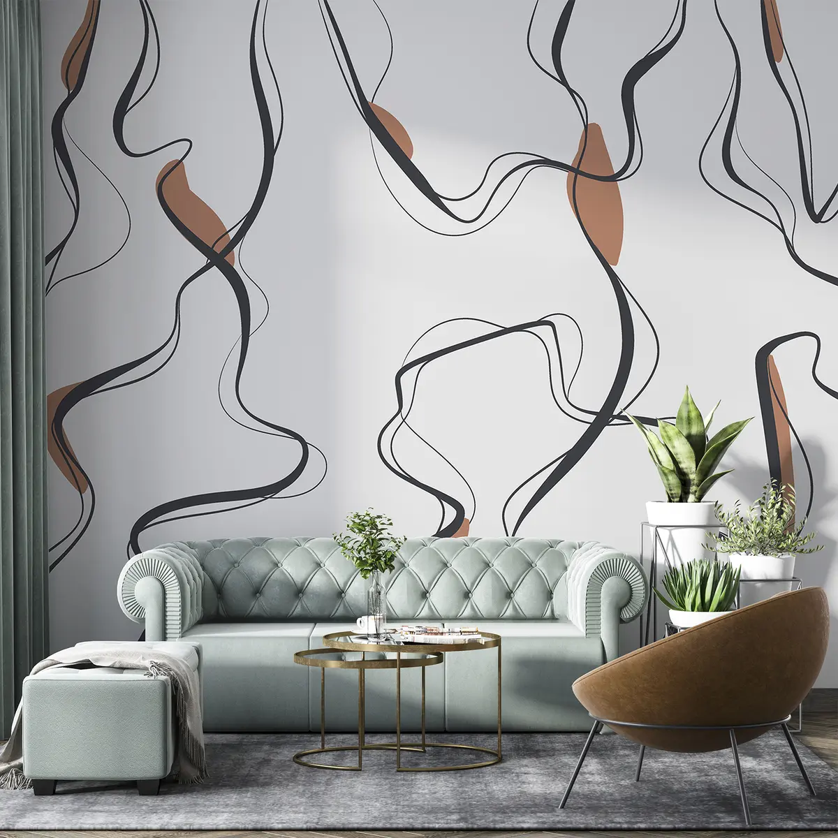 Fototapetak Tinta rajz művészet, absztrakt minta, geometriai vonalak, szürke és narancssárga Nr. u99659v3