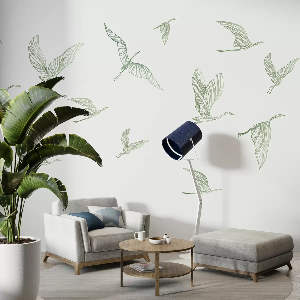 Fototapetak Repülő madarak line art, minimalizmus, természet, zöld színek Nr. w00758v2