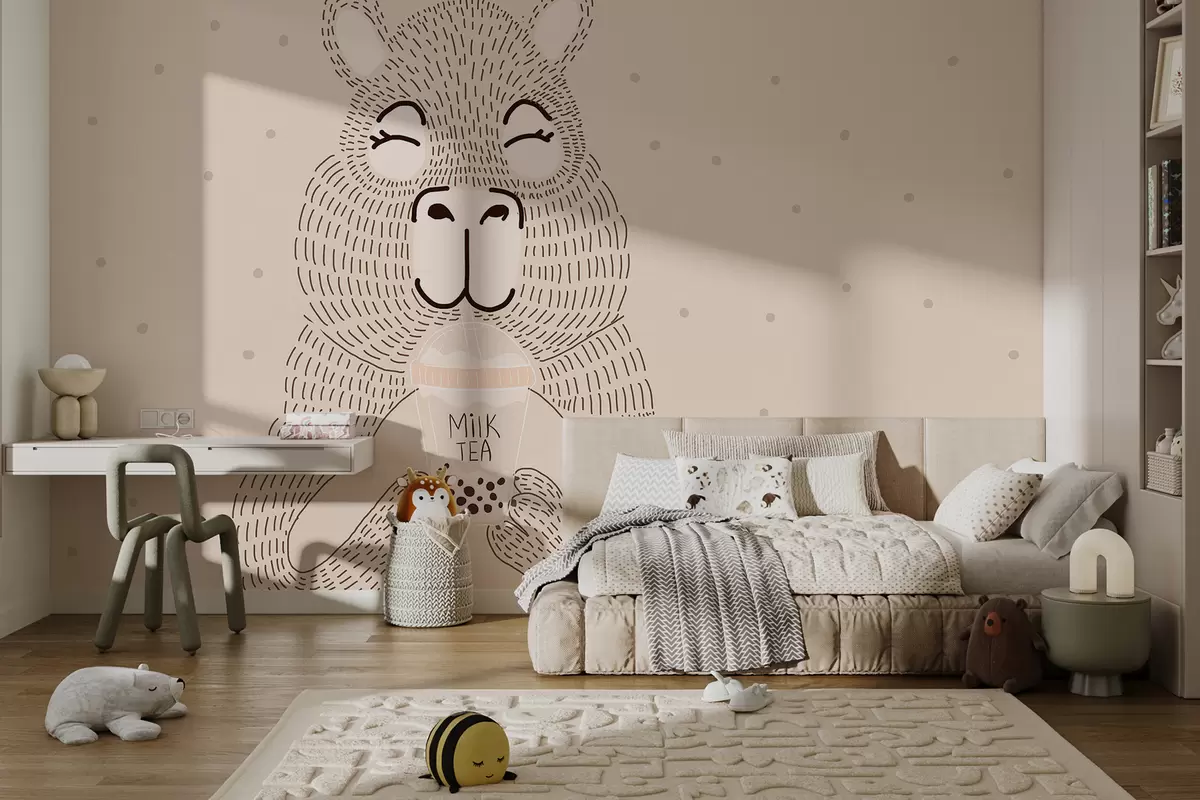 Fototapetak Nagy aranyos capybara buborékos teával minimalista pöttyös stílusban, bézs pöttyös háttéren Nr. w01122v1