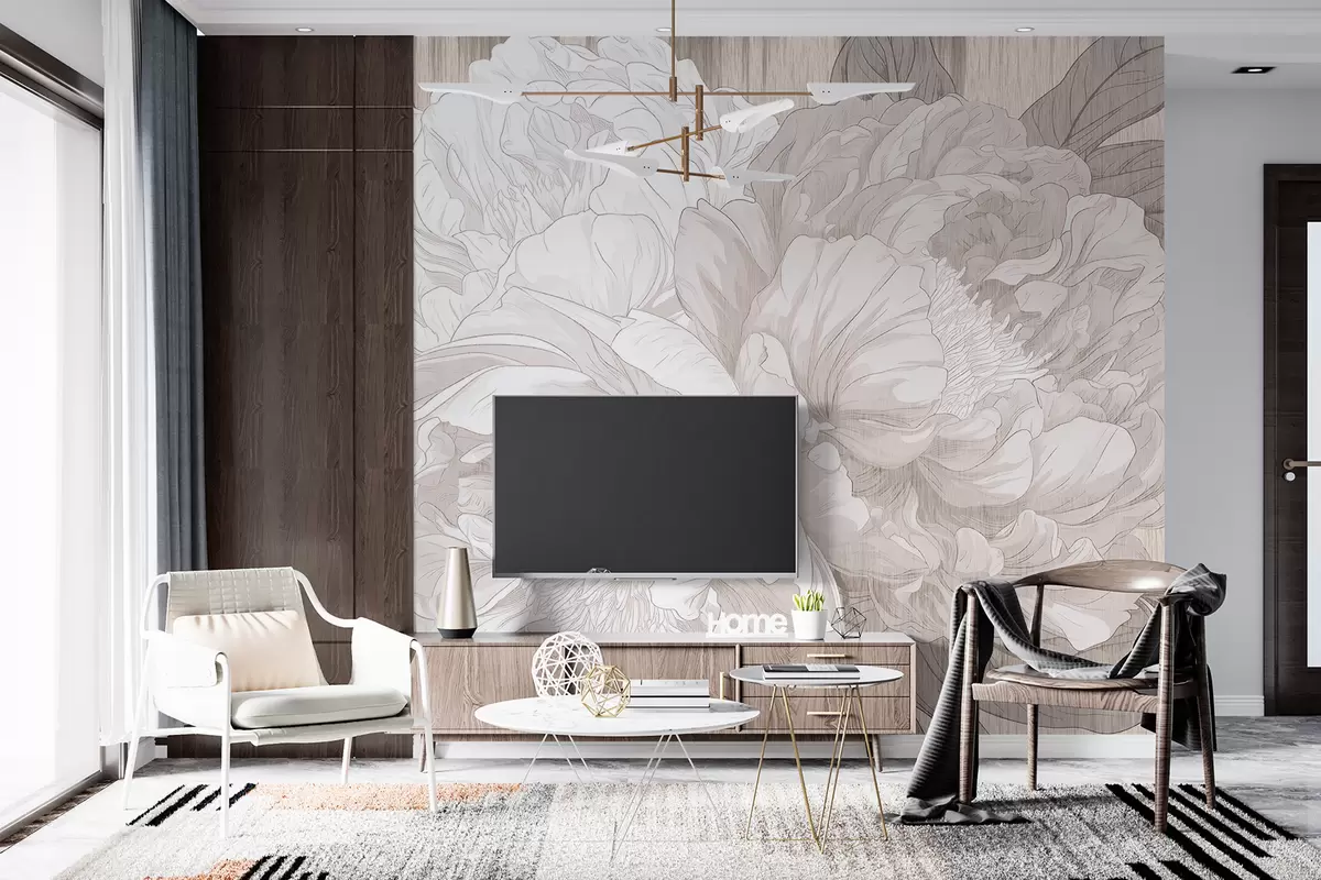 Fototapetak Texturált nagy bazsarózsa virágok bézs árnyalatokban Nr. w01141
