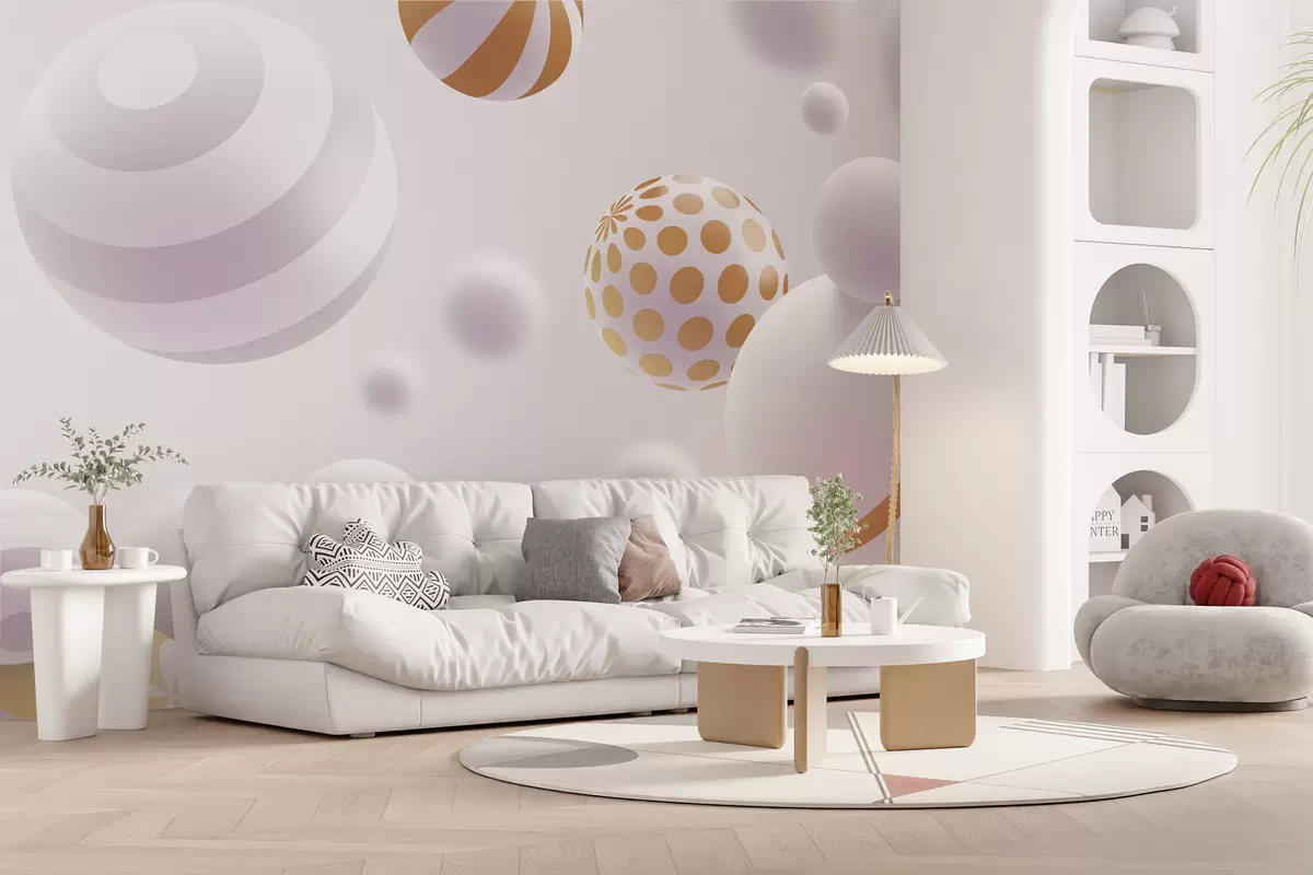 Fototapetak Volumetrikus 3D stílusú repülő gömbök világosszürke árnyalatokban, narancssárga akcentusokkal Nr. w01148