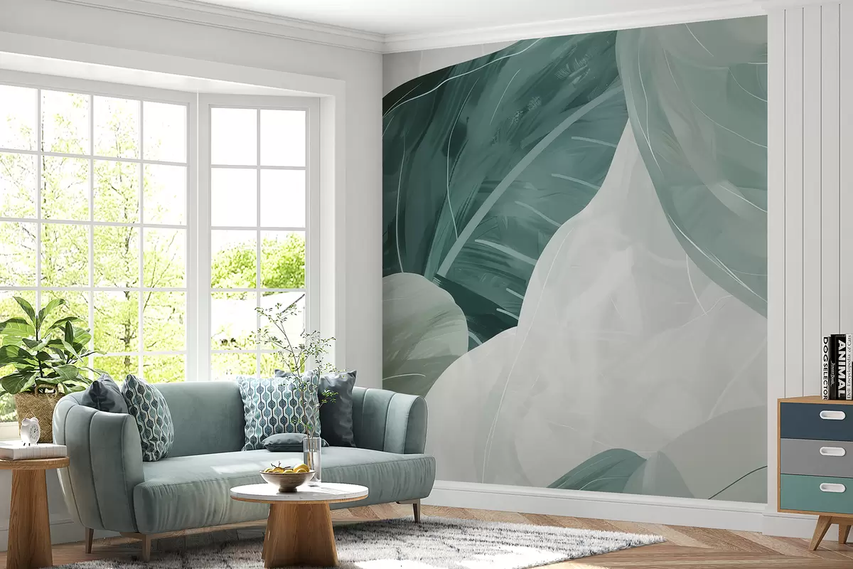Fototapetak Egy közeli zöld levelek rajzolt stílusban. Nr. w01276