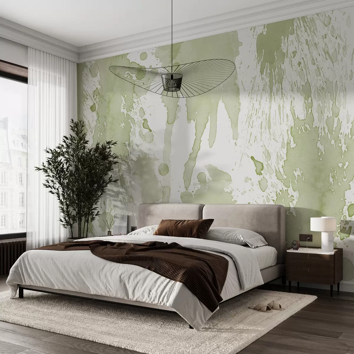 Fototapetak Akvarell fröccsenések, festék rajz absztrakció, zöld szín Nr. w01285