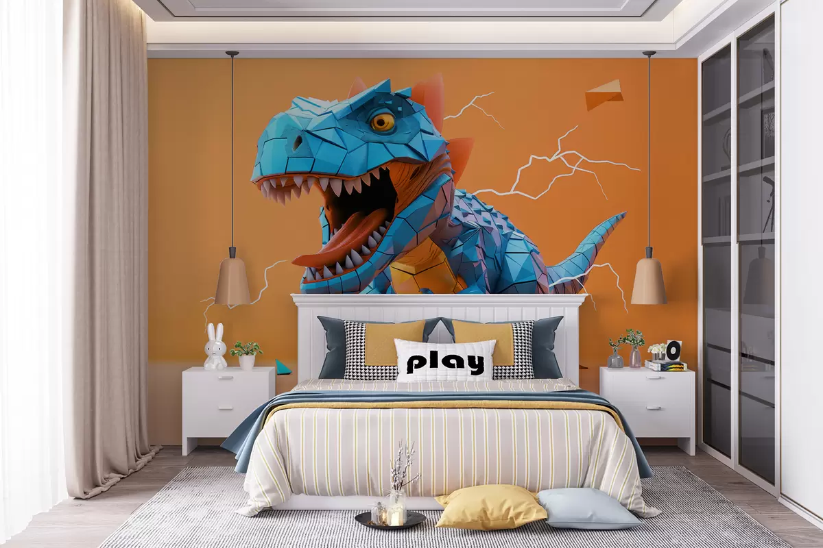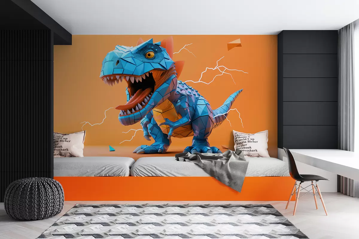 Fototapetak Vad dinoszaurusz villámcsapással sárga és kék színben Nr. w01333v1