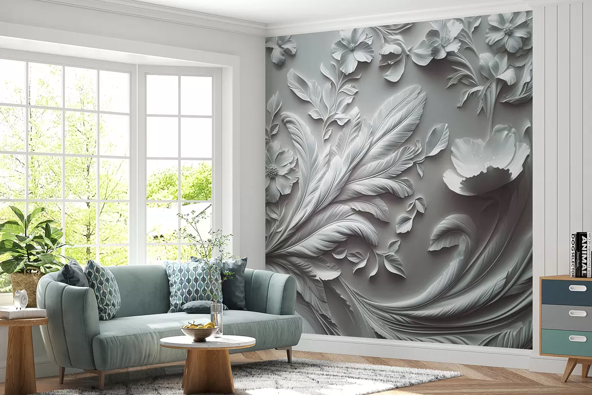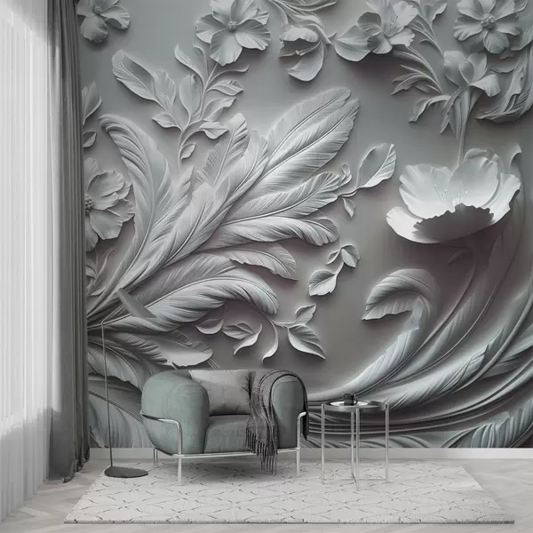 Fototapetak Kiválóan emelt virágok és levelek szürke tónusokban Nr. w01356v2