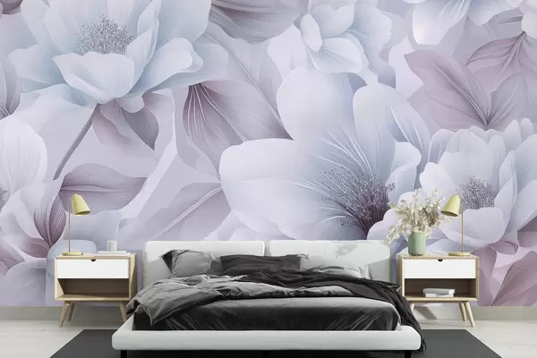 Fototapetak Gyönyörű akril virágok, virágkompozíció, természet, pasztell kék és lila színek Nr. w01449v2