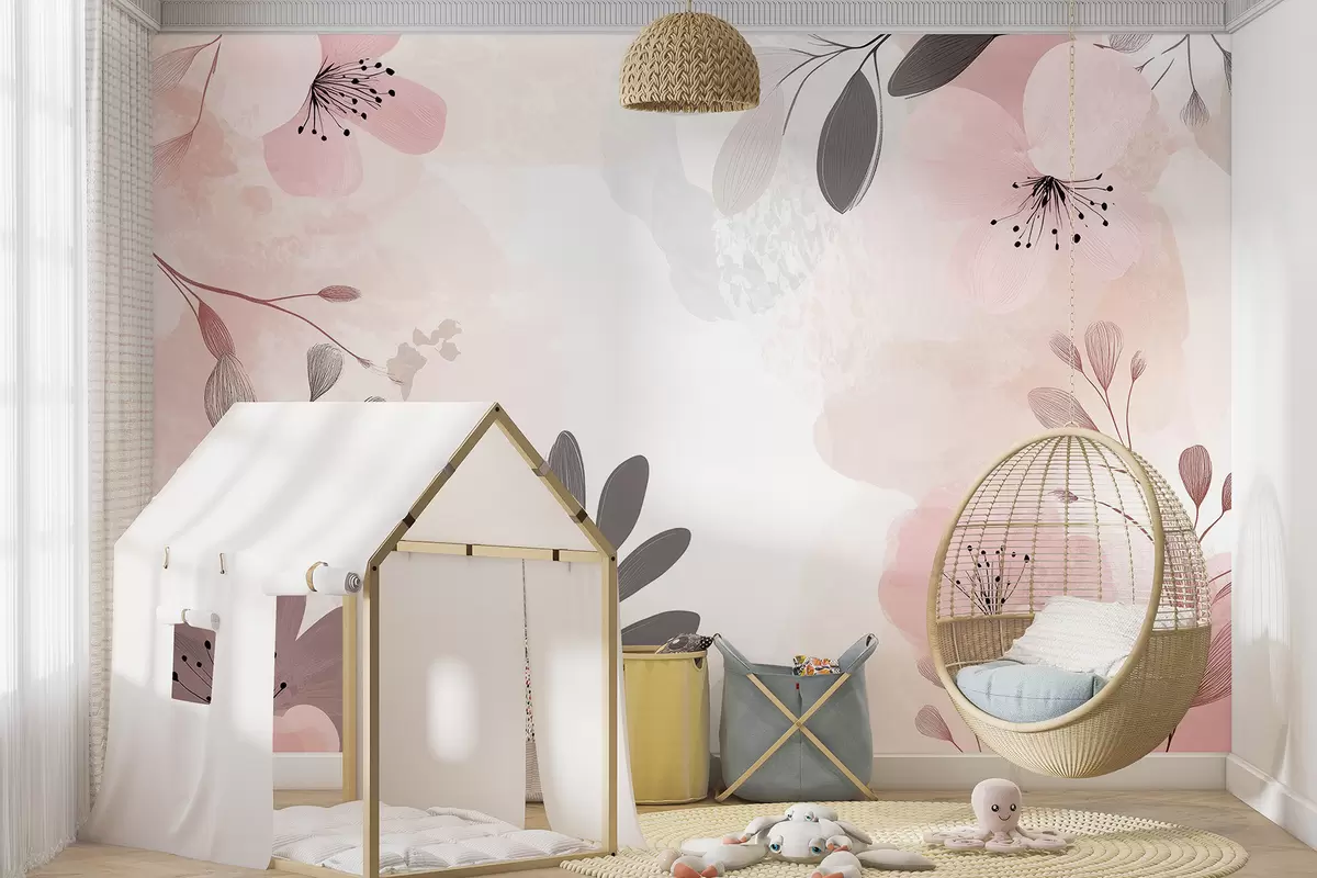 Fototapetak Absztrakt virágos rajz, természet, nagy virágok, lágy pasztell, rózsaszín színpaletta Nr. w01451v1