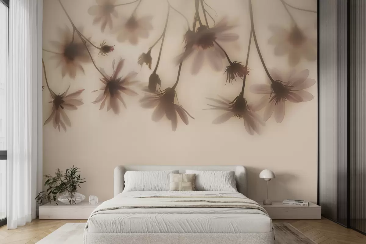 Fototapetak Finom virágok a ködben felülről lógva rózsaszín színekben Nr. w01469