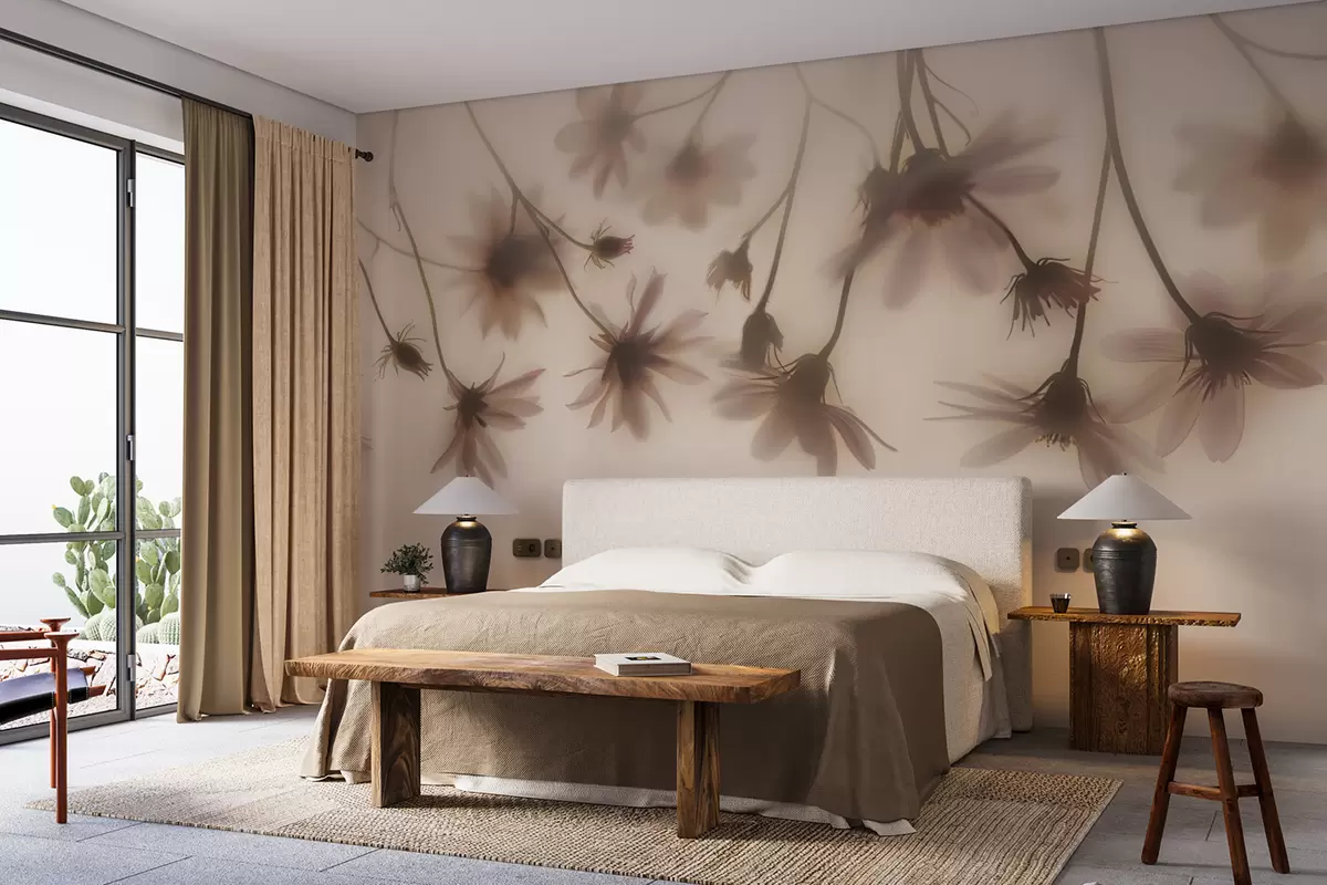 Fototapetak Finom virágok a ködben felülről lógva rózsaszín színekben Nr. w01469
