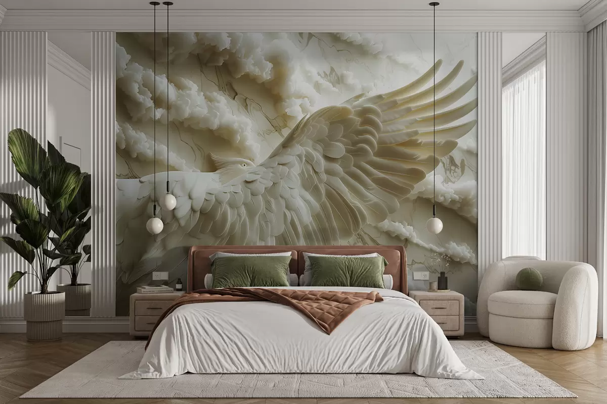 Fototapetak 3D-s repülő fehér sas a háttérben a felhők és a márvány Nr. w01476