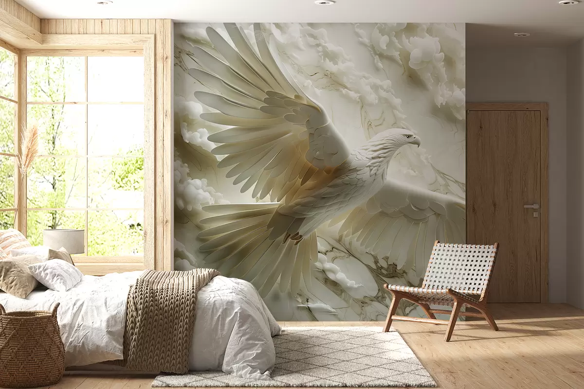 Fototapetak 3D-s fehér sas a háttérben a felhők és a márvány Nr. w01477
