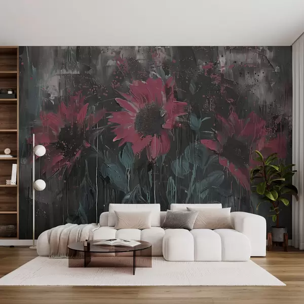 Fototapetak Absztrakt napraforgó kép, sötétszürke háttér és vörös-rózsaszín tónusok Nr. w01480v1